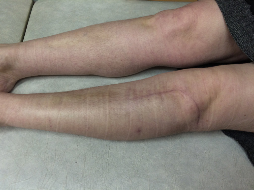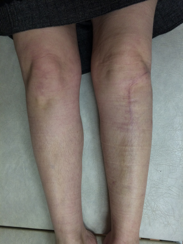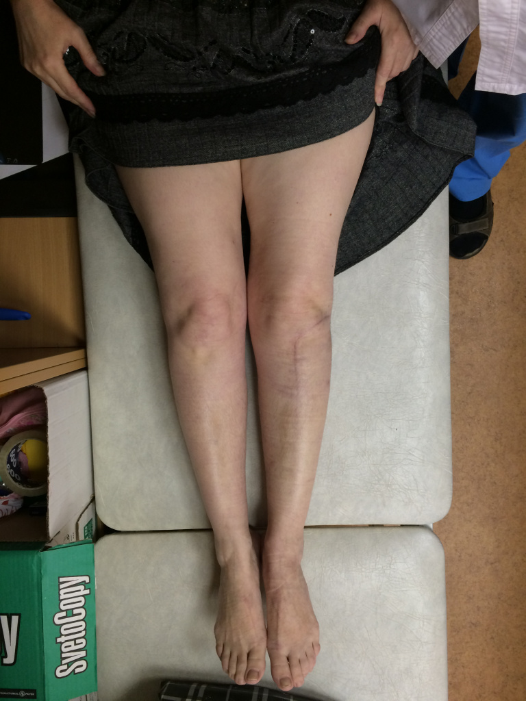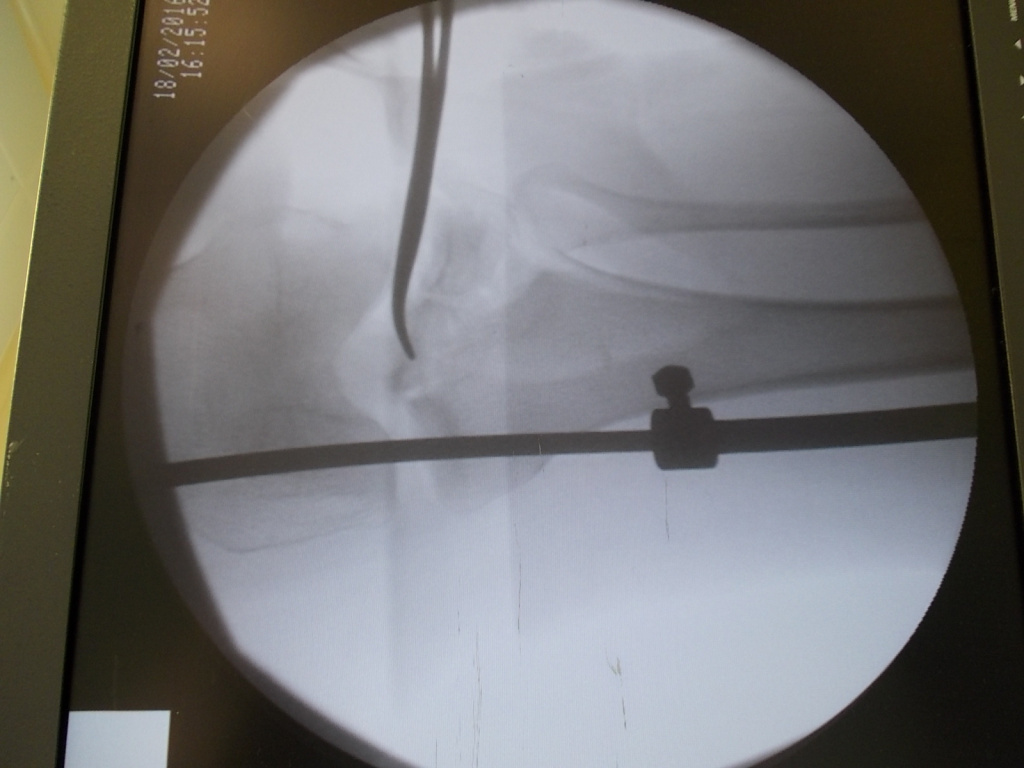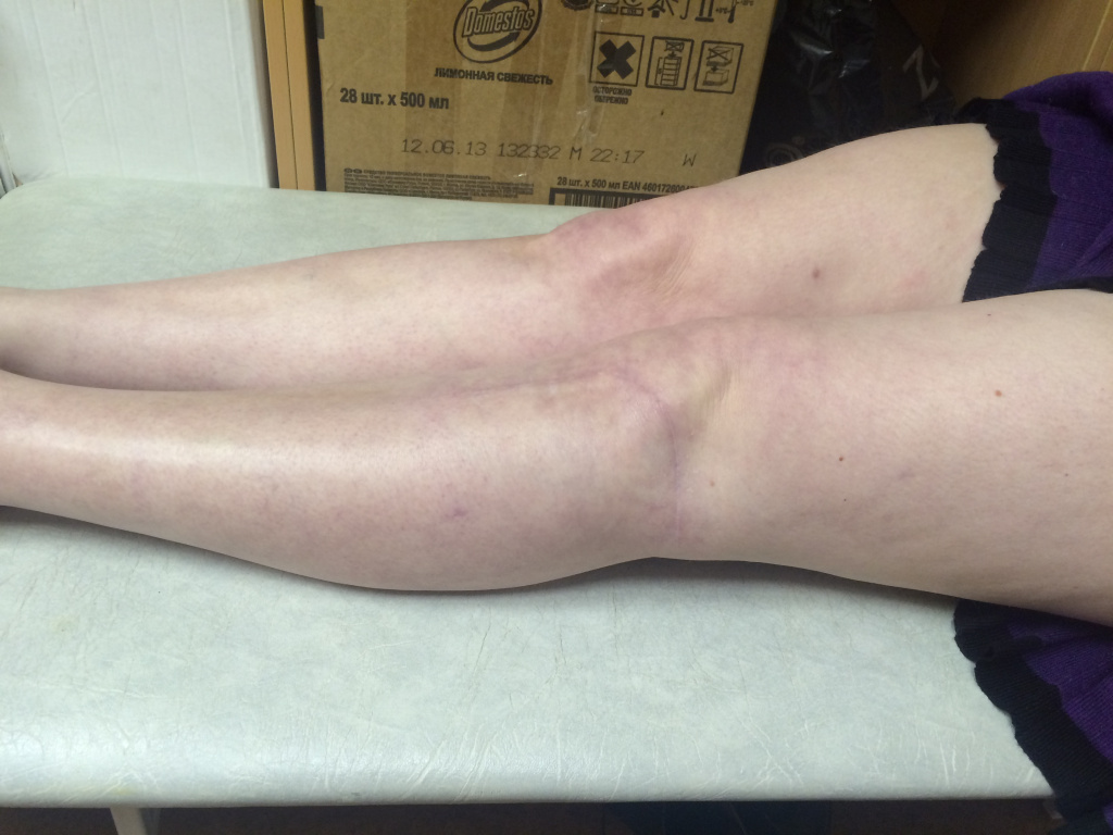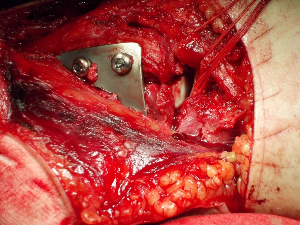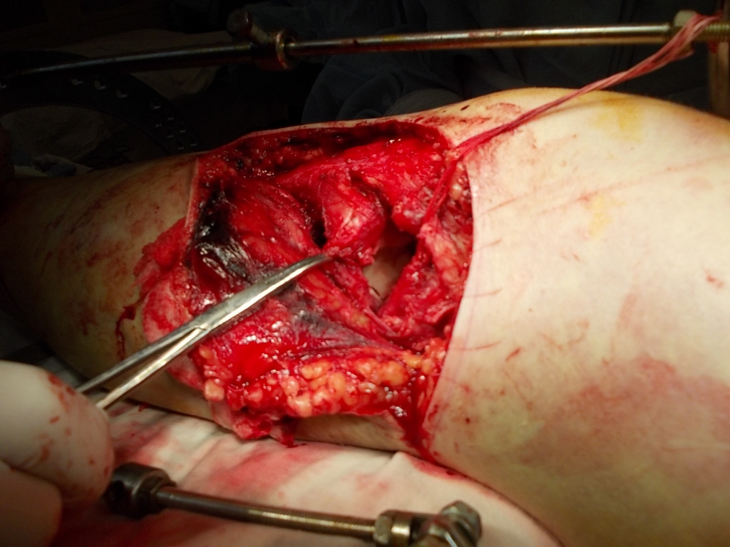Операция - открытая репозиция, остеосинтез большеберцовой кости опорной пластиной с костной ксенопластикой маетриалом "Остеоматрикс". На контрольных снимках в три и шесть месяцев имеется консолидация перелома, миграции фиксатора нет, имеется остеоинтеграция ксенопластического материала. Функция коленного сустава полная.