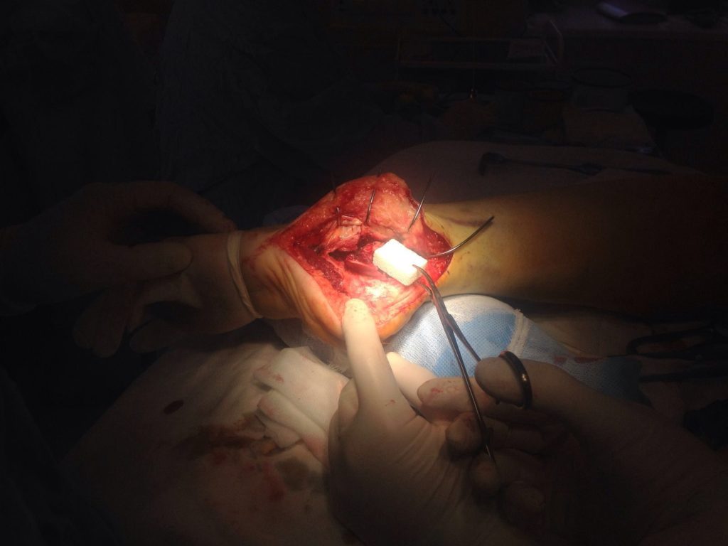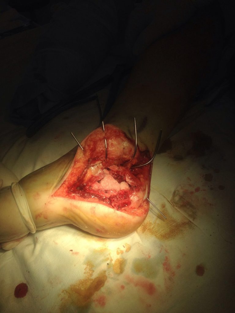 Применение материала Остеоматрикс при импрессионно-оскольчатом переломе пяточной кости