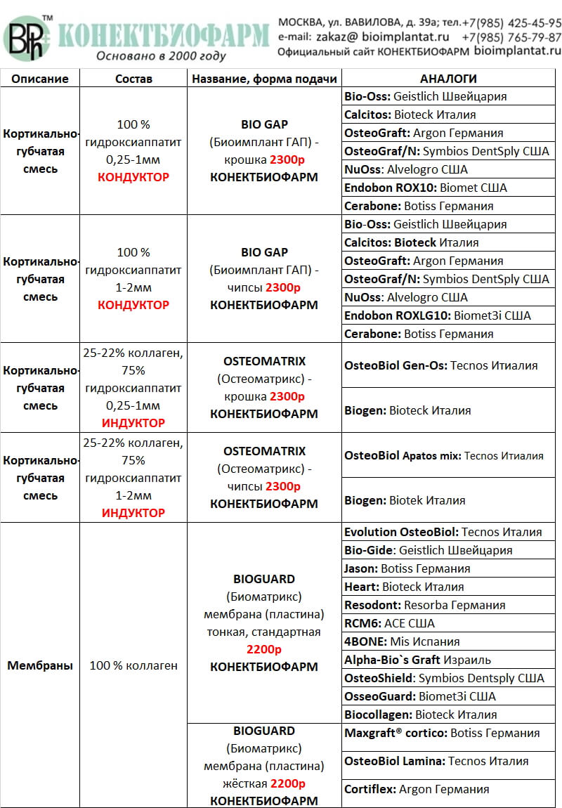 Сравнительная таблица остеопластических материалов