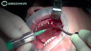 В этом видео вы увидите, как легко и удобно при помощи шаблона для сверления http://www.kohlermed.ru/?p=3474 наметить направляющие для сверления, при установке имплантатов. Конечно же соблюдая рекомендованные нами протоколы работы с нашими материалами, делаем санацию раны. Более подробно с этой манипуляцией можно ознакомится вот в этом нашем видео https://youtu.be/BzsfD-pN9nk, а также ознакомиться в статье на нашем сайте https://bioimplantat.ru/articles/na-plechakh-titanov/mestnoe-primenenie-antibiotikov/ Во время данной операции были использованы следующие материалы: БИОИМПЛАНТАТ ГАП артикул 40402 – 1шт БИОМАТРИКС артикул 40206 – 1шт Финансовые затраты на материалы составили 5600 рублей. Оба установленных имплантата были плотно защищены «сыпучей мембраной», эта манипуляция предотвращает краевую резорбцию кости, тем самым сводит на нет возможность проявления периимплантита как такового. Очень подробно показаны швы, которыми доктор зашил рану. Приятного просмотра!!!