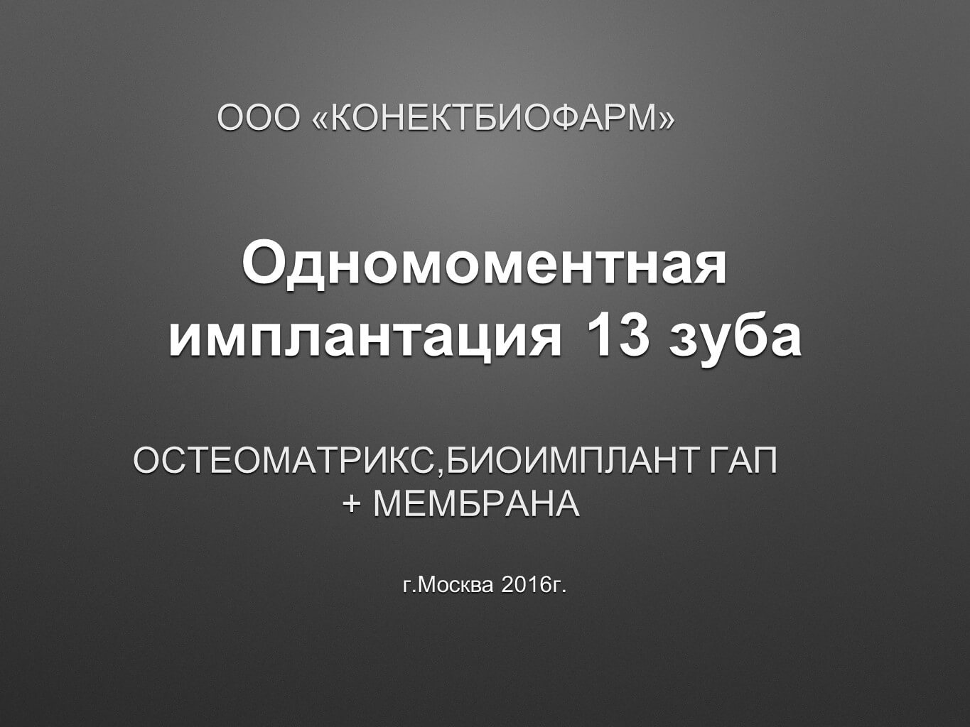 Одномоментная имплантация 13 зуба - ОСТЕОМАТРИКС, БИОИМПЛАНТ ГАП